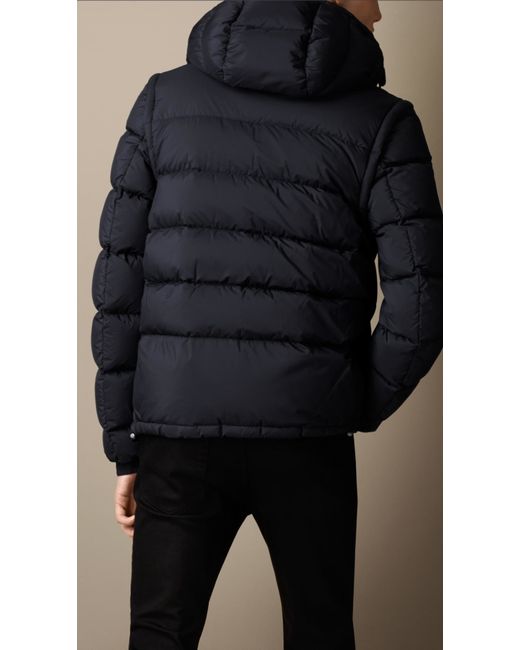 Burberry Puffer Jacket With Removable Sleeves In Navy Blue For Men Lyst